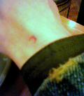 昨日、手首に根性焼きを